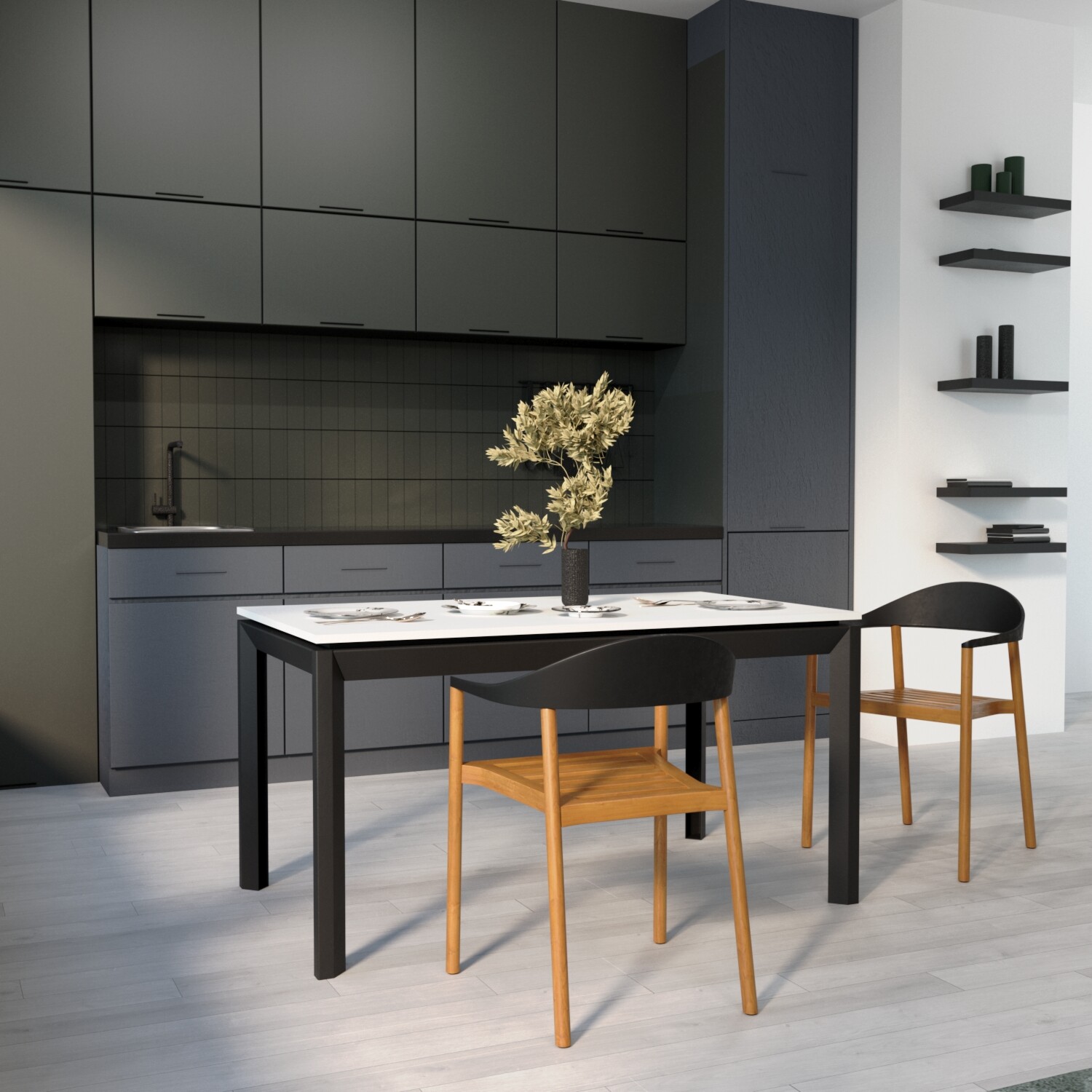 Столешница: МДФ с пластиковым покрытием HPL, 1400 х 800 мм. Раскладывается до 1800 х 800. Вставка 800 х 400 мм прячется в стол.
